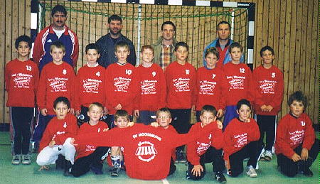 Sweatshirt-Spende für E-Junioren Die E-Junioren in ihren neuen Sweatshirts. In der hinteren Reihe v.l.: Betreuer Stephan Sohns, die beiden Spender Stephan Rück und Sven Bauer, sowie Betreuer und Jugendleiter Kuno Lange. (Foto:SVM)