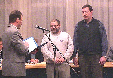 Kubein und Böhm für fünf Jahre an der Spitze der Feuerwehr (Foto:Richter)(hr) Die neue Führung der Freiwilligen Feuerwehr ist jetzt offiziell im Amt. Gestern bestätigte der Gemeinderat die Wahlergebnisse der Abteilung Stadt und der Gesamtwehr. Jörg Kubein war für weitere fünf Jahre sowohl zum Kommandanten der Abteilungswehr Stadt als auch zum Gesamtkommandanten gewählt worden. Sein Vertreter in der Gesamtwehr ist der Friedrichsdorfer Abteilungskommandant Ralf Böhm. Unser Bild zeigt Bürgermeister Bernhard Martin gestern abend mit Jörg Kubein (Mitte) und Ralf Böhm.