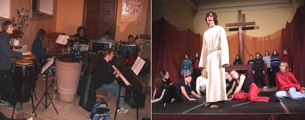 Ehrgeiziges Rockoper-Projekt feiert am Samstag Premiere Musikgruppe und Ensemble bei den Proben in der Michaelskirche. (Fotos:Richter) (hr) Die Proben für die Aufführungen der Rockoper "Jesus Christ Superstar" in der Evangelischen Michaelskirche in Eberbach laufen auf Hochtouren. Der Jugendchor "Voices Of Heaven" der Singschule, das Jazztanz-Team "Chili Peppers" und eine Live-Band aus Musikern der Jazz-Combo und des Basisensembles der Musikschule werden das Erfolgsmusical von Andrew Lloyd Webber und Tim Rice am Samstag, 1.Februar, um 18 Uhr erstmals aufführen. Die Leitung hat Achim Plagge. Die Vorverkaufs-Tickets für die Premiere und die weiteren Aufführungen am 2. und 9.Februar sind schon seit einigen Tagen ausverkauft. Wer Glück hat, kann aber noch Karten an der Abendkasse ergattern.