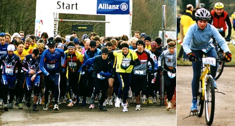 Laura Schmitz und Oliver Stoll als Beste ihrer Alterklassen Der Start zum "Dirty Race Duathlon" in Murr und Laura Schmitz auf der Radstrecke. (Fotos:privat)(tw) (bm)Der "Dirty-Race-Duathlon" in Murr bei Ludwigsburg war Anlaufstelle für über 150 Sportler, die sich trotz eisiger Temperaturen nicht davon abhalten ließen über die anspruchsvolle Wettkampfstrecke von 5 Kilometer Laufen, 15 Kilometer Mountainbikefahren und nochmals 4 Kilometer Laufen zu gehen. Mit im Teilnehmerfeld waren Laura Schmitz und Oliver Stoll von der Triathlonabteilung des TV Eberbach.