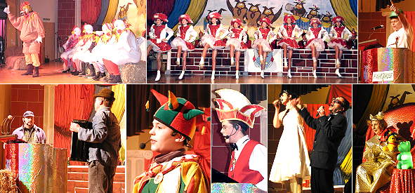 Erste Sitzung in Rockenau mit kurzweiligem Programm (Fotos:Claussen)(jc) Die gestrige öffentliche Auftaktsitzung des närrischen Gremiums vom Club Eulenspiel in Rockenau, brachte das erwartetet kurzweilige Programm. Nach dem Einmarsch des Elferrates in historischen Kostümen konnte Präsident Roman Krawczyk in der ausverkauften Festhalle unter den zahlreichen Vertretern des öffentlichen Lebens auch Bürgermeister Bernhard Martin begrüßen. Nach den offiziellen Begrüßungsformeln und der Vorstellung des neuen Elferrates Rolf Dietz sorgte dann erst einmal Tanzmariechen Ann-Kathrin Wiegel für frischen Wind. Jan Dörfler zeigte sich anschließend in seiner Rolle als "Till", in die er jetzt schon im zweiten Jahr schlüpft, überzeugend gefestigt und die "Eulenküken" konnten bei der Vorstellung der neuen Bademoden 2003 ohnehin nicht viel falsch machen, was sich in einer Zugabe noch manifestierte.