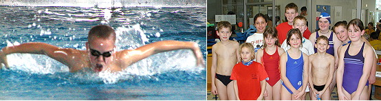 TV Eberbach und SV Neptun Waldbrunn bei Schwimmfest Phillip Uhrig auf der 100m Schmetterling-Strecke, sowie das Schwimmteam des SV Neptun Waldbrunn (Fotos:Claussen)