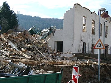 Ehemaliger Kindergarten wird abgerissen (Foto:privat)(hr) (cr) Dem Erdboden gleich gemacht wird derzeit das Martin-Luther-Haus in der Dr.-Weiß-Straße. In dem Gebäude war bis vor rund einem Jahr noch ein evangelischer Kindergarten untergebracht. Das Haus hätte mit hohem Aufwand saniert werden müssen, um es weiterhin nutzen zu können. Das wurde von der Evangelischen Kirchengemeinde aber als unwirtschaftlich angesehen.