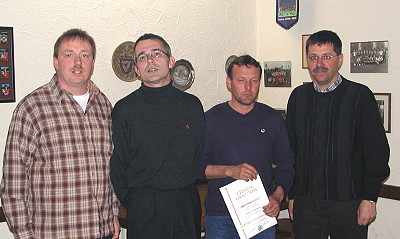 Gemeinsame Jugendarbeit in Eberbach soll Fußballelite heranziehen Lediglich zwei Mitglieder waren zur Ehrung anwesend. V.l.: Heinz Luyven (1. Vorsitzender), Karl- Heinz Gebhard, Klaus Schüßler und Armin Grein (2. Vorsitzender) (Foto:Claussen)(jc) Gestern hielt der SV Eberbach seine turnusmäßige Mitgliederversammlung ab. Vereinsvorsitzender Heinz Luyven blickte in einer kurze Rückschau auf das abgelaufene Jahr zurück, das zunächst von der Meisterschaft in der B- Liga und dem Aufstieg in die A-Klasse geprägt war. Mit der laufenden Saison, wo der man derzeit den 8. Tabellenplatz der A-Liga belegt, zeigte sich Luyven nicht recht zufrieden. Es fehle ihm am Sieges- und Kampfeswillen in der Mannschaft. Ein Ausblick auf die kommende Saison sei schwierig, sicher sei allerdings, dass Trainer Gabriel Ramirez die Mannschaft weiterhin betreuen wird und zwei neue Abwehrspieler verpflichtet werden sollen. Kontakte seien bereits geknüpft. Unzufrieden sei man mit der Spielfeldsituation, man wünsche sich mehr Spielmöglichkeiten auf dem Rasenplatz. Insbesondere die Jugendmannschaften müssten zu oft auf den ungeliebten Hartplatz ausweichen. Zusammen mit dem VfB Eberbach verhandle man diesbezüglich mit der Stadt.