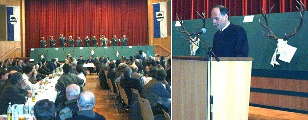 Erste offiziell ausgewiesene Wildruhezonen im Eberbacher Stadtwald Die Eberbacher Jagdhornbläser bei der Eröffnung der Hegeschau und Geschäftsführer Dr. Andreas Wiese. (Fotos:Wörner)(tw) Anlässlich der alljährlich in der Stadthalle stattfindenden Hegeschau legten gestern die Rotwildjäger im Odenwald Rechenschaft ab. Mit der Vorlage der Unterkiefer bei den weiblichen Stücken und den Trophäen bei den männlichen, wird der vom hessischen Jagdgesetz und von den Behörden in Baden-Württemberg und Bayern geforderte Beweis erbracht. Die Auswertung der Kiefer und Trophäen spiegelt die Bestandsstruktur des Rotwildes im 46.000 ha großen Rotwildgebiet Odenwald wieder und lässt wertvolle Rückschlüsse auf seine Qualität und seine Höhe zu.