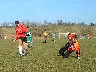 von beiden Mannschaften in den eigenen Reihen gehalten, und die Abwehrreihen standen gut. Einzig bei Eckbällen kam der Gast zu zwei guten Chancen, die aber nicht genutzt werden konnten. Ein anderes Spiel sahen die Zuschauer in der zweiten Hälfte. Beide Mannschaften hatten nun mehr Zug zum Tor, und es gab dadurch auch mehr Chancen. Die erste hatte T. Krahl in der 53. Minute für den TSV, als ihm ein Querschläger der FC-Abwehr genau auf den Fuß fiel. Der Ball rollte allerdings knapp am Tor vorbei. Eine Minute später verlängerte der eingewechselte A. Wettig einen Eckball, aber der Torhüter der Gäste konnte den Ball abwehren. Chancenlos war er allerdings in der 55. Minute. T. Krahl wurde im 16-er gefoult, und A. Wettig verwandelte den fälligen Elfmeter sicher zur 1:0-Führung für die Hausherren. Vier Minuten später konnte Chr. Hauber auf 2:0 erhöhen. Ein satter Schuss aus 16 Metern schlug unter der Latte ein. Nur Minuten später kam der Ball nach einem Abwehrfehler der Mosbacher zu Stürmer J. Rohm. Nach einem Foul an diesem ließ der Schiedsrichter Vorteil gelten, und U. Mader lief somit alleine auf den Torwart und schoß sicher zum 3:0 ein. Nun kam die Zeit der Gäste. Innerhalb von neun Minuten konnten diese ausgleichen. Durch zum Teil katastrophale Abwehrfehler mußte der TSV-Torwart M. Artesero dreimal chancenlos zuschauen, wie der Vorsprung dahinschmolz. Die letzte viertel Stunde ging es hin und her, und beide Mannschaften versuchten das Siegtor zu erzielen. Die größeren Chancen hatten hierbei die Hausherren, denn zuerst wurde in der 85. Minute ein klarer Elfmeter nicht gegeben, und in der Nachspielzeit traf U. Mader mit einem Kopfball nur den Pfosten. Das Spiel der 2. Mannschaften endete 2:3.