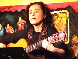 Ein Abend der leisen Töne (Foto:Richter)(hr) Ein stimmungsvolles Potpourri französischer Literatur und Chansons der vergangenen Jahrzehnte präsentierte Barbara Zechel gestern Abend in der gut besuchten Galerie ARTgerecht. Bei Kerzenlicht, ohne technische Verstärkung und nur mit eigener Gitarrenbegleitung rezitierte die Heidelbergerin mit faszinierender Stimme bekannte Poeten und Liedermacher der Grande Nation: Barbara, Jacques Brel, Marie-Paule Belle, Georges Brassens, Boris Vian, Georges Moustaki, Edith Piaf und andere.