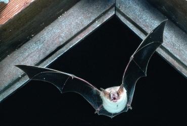 Fledermäuse erwachen nach den energiezehrenden Wintermonaten geschwächt Großes Mausohr (Myotis myotis) ins Quartier (Kirchdachboden) einfliegend. (Foto:Menz)(tw) (db) Die steigenden Temperaturen und die duftende Frühlingsluft haben die Fledermäuse aus ihrem Winterschlaf geholt. Neben Zwergfledermäusen und Abendseglern wurden in den letzten Tagen auch schon Große Mausohren bei abendlichen Ausflügen beobachtet.