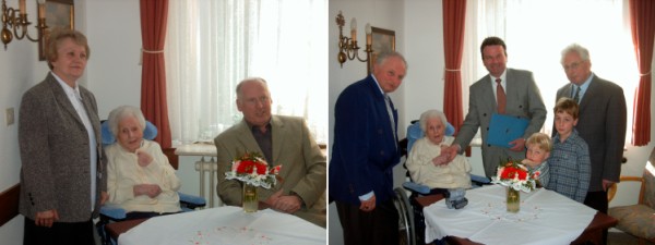 Umgeben von ihren Söhnen Roland und Werner nebst Gattinnen, den vier Enkeln und drei Urenkeln sowie vielen Verwandten und Bekannten fühlte sich die Seniorin an ihrem Ehrentag sichtlich wohl. Der ausgezeichneten familiären Betreuung kann sich Hilda Knörr gewiss sein. Sohn Werner berichtete aus einem Schicksalsjahr seiner Mutter. 1945 habe sie wegen einer Gallenoperation gerade noch 46 kg gewogen. Der behandelnde Arzt meinte, man habe ihr Leben, das damals an einem seidenen Faden hing, um fünf Jahre verlängern können. Wie man sich doch manchmal täuschen kann, so Bürgermeister Martin, der den Widder-Geborenen viel Lebenswillen nachsagt.