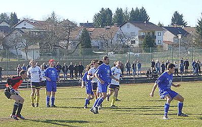 Knapper Sieg im Derby (Foto: privat)(bro) (ge) Einen recht glanzlosen, aber aufgrund der klareren Torchancen insgesamt verdienten 1:0-Erfolg konnte der SV Beerfelden am vergangenen Sonntag gegen den SV Gammelsbach feiern. Das Oberzent-Derby, das bei herrlichem Fussballwetter über 300 Zuschauer in die Stried gelockt hatte, war jedoch weitestgehend von Taktik geprägt. Gleich zu Beginn hatte Jochen Schäfer die frühe Führung für die Platzherren auf dem Fuß, doch sein Schuss parierte SVG-Torwart Jürgen Schmidt glänzend (2.). In der Folgezeit bot sich den Zuschauern ein nahezu ausgeglichenes Spiel, in dem beide Abwehrreihen sicher standen. Weitere gute Torchancen im ersten Spielabschnitt boten sich wiederum Jochen Schäfer mit einem Direktschuss (19.), Libero Robin Hemberger per Freistoss (27.) sowie Christoph Röchner, der das Leder aus spitzem Winkel an das Außennetz setzte (33.). Für die Gäste hatte Markus Klingler eine gute Chance zum Torerfolg, die aber noch vereitelt werden konnte. Nach 45 Minuten unterbrach Referee Finzer (Neukirchen) die auf mäßigem Niveau stehende Partie und bat zum Pausentee. Im zweiten Spielabschnitt das unveränderte Bild: Beide Teams schenkten sich auch weiterhin nichts und viele Zuschauer ahnten schon, dass an diesem Tage womöglich ein einziger Treffer zum dreifachen Punktgewinn reichen würde. Der SVB agierte nun einen Tick engagierter und erarbeitete sich im Laufe der zweiten Halbzeit ein leichtes optisches Übergewicht. In der 65. Minute war es dann endlich so weit: Nach einem Eckball von Mathias Willenbücher nutzte Spielertrainer Roland Hartmann einen Stellungsfehler in der Gammelsbacher Hintermannschaft aus und traf mit einem Flachschuss aus sieben Metern zur umjubelten 1:0-Führung für den SVB. Gammelsbach lockerte nun natürlich die Deckung und drängte auf den Ausgleich. Insgesamt stand die Beerfelder Abwehr aber zu sicher und ließ sich auch in den Schlussminuten nicht mehr überraschen. So blieb es dann schließlich auch beim knappen Sieg der Heimelf, als Schiedsrichter Finzer das jederzeit faire Derby pünktlich nach 90 Minuten abpfiff.