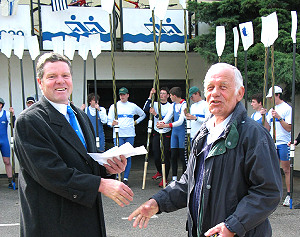 Breitensport weiterhin Säule der Rudergesellschaft Sportvorsitzender Hermann Schiml (links) gratuliert Fedor Grißtede zur Erringung des Äquatorpreises.(Foto:Wartner)
