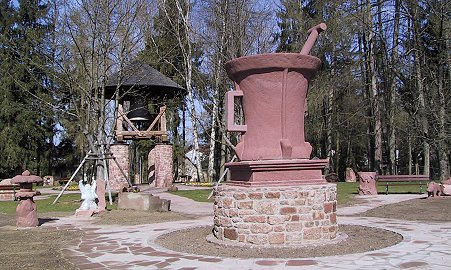 Großer Steinmörser in Schwarzach errichtet (Foto:privat)(hr) Als weitere Attraktion des Erholungszentrums in Schwarzach lockt nun neben dem Wildpark mit seinem interessanten Tierbestand und der eindrucksvollen Mörserglocke auch ein zum Saisonstart errichteter monumentaler Steinmörser, eine private Stiftung, in unmittelbarer Nachbarschaft der Mörserglocke. Der Steinmörser hat eine Höhe von 2,05 Metern und ein Gewicht von 6,9 Tonnen.