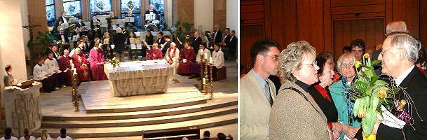 Stellvertretend für die katholischen Kirchengemeinden überbrachte Pfarrgemeinderatsvorsitzende Gertraud Springer von St. Johannes Nepomuk nach der heiligen Messe ihre Glückwünsche für Pfarrer Seitz. Monsignore Bader gratulierte seinem Bruder im Namen des Dekanats Mosbach, Pfarrer Ekkehard Leytz für die evangelischen Kirchengemeinden. Die Segenswünsche für die politische Gemeinde überbrachte Bürgermeister Bernhard Martin. Pfarrer Hubert Seitz bedankte sich bei allen die gekommen waren und allen Mitwirkenden und lud zum Weiterfeiern ins Katholische Pfarrheim ein.