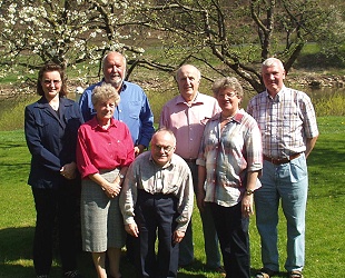 Weltenbummler aus Bruchsal in Eberbach Julienne Matthias, Elisabeth Sauer, dahinter Ortsvorsteher/Rockenau Hans Leistner, Heinz Swoboda, August Sauer, Marianne und Bernd Weis (v.l.n.r.) (Foto:privat)