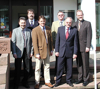 Rechner Immobilien und Sparkasse Starkenburg kooperieren V.l.: Norbert Layer und Willi Heckmann von der Sparkasse, Roland Rechner und Robert Rechner, Wolfgang Martin , Leiter der Sparkassenfiliale Hirschhorn und Klaus Thieme (Foto:Claussen)