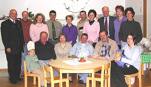 Närrisches Spektakel für guten Zweck Die Leiterin des Zwingenberger Kindergartens Christa Domogalla (6.v.r.), Bürgermeister Peter Kirchesch (4.v.r) und Pfarrer Gerhard Hemker (links) bedankten sich bei den "Hallodries" für die Spende. (Foto:Baumgartner)(tb) Hervorragende Ideen, eine glänzende Organisation und Improvisationstalent zeichnen die seit nunmehr elf närrischen Jahren bestehende Zwingenberger Faschingsgruppe "Hallodries" aus. Fast schon traditionell greift diese Gruppe seit sieben Jahren jeweils am Faschingssamstag ein interessantes örtliches Thema auf und setzt dieses in eine Spendenaktion um. In diesem Jahr war der Bau der "Fischkinderstube Zwingenberg" das Thema, welches wiederum bestens bei der Zwingenberger Bevölkerung ankam und mit über 200 Besuchern auch großartigen Anklang fand.