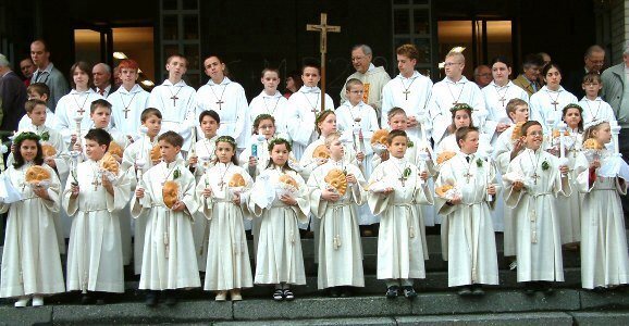 Der Weiße Sonntag ist nach katholischem Verständnis ein Tag der Freundschaft und der Vereinigung mit Jesus im Sakrament der Eucharistie. Seit Oktober vergangenen Jahres waren zuerst die Eltern und anschließend die Kinder von zahlreichen Gemeindemitgliedern auf diesen Tag vorbereitet worden. Durch vielfältige Aktivitäten. z.B.