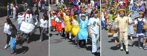 16 Zugnummern beim ersten Neckargeracher Sommertagsumzug Den Winter trieb man gestern in Neckargerach beim ersten Sommertagsumzug aus. Unsere Fotos zeigen die Theatergruppe, deren Motiv den Winter symbolisierte, sowie die Kinder des evangelischen und katholischen Kindergartens. (Fotos: Baumgartner)(tb) "Der Sommertag ist da" hallte es gestern durch die Neckargeracher Straßen, als die Neckargeracher Musikanten FwK erstmals in Neckargerach zu einem Sommertagsumzug einluden. Immerhin 16 Zugnummern hatte man bei strahlendem Frühsommerwetter zusammenbekommen und so schlängelte sich ab 13:30 Uhr unter den Augen mehrerer Hundert Schaulustigen ein bunter Zug aus kleinen und großen Teilnehmern durch Neckargerach. Startpunkt war die "Alte Zwingenberger Straße", von dort ging es weiter über die Haupt- und Bahnhofstraße bis zur Zugauflösung am Bahnhof.