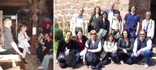 Bezaubernde kleine Städte - Touristikfachleute aus Italien besuchten den Odenwald (Fotos: privat)(bro) Die Tour führte von Speyer kommend zunächst nach Eberbach, wo die Gäste mit einem kleinen Imbiss und der berühmten Viktoria-Torte begrüßt wurden. Anschließend fand bei bestem Wetter ein kleiner Stadtrundgang statt, der seinen Abschluss im Küfereimuseum fand. Besonders beeindruckt zeigten sich die Besucher von der romantischen Altstadt und der reichen Kuchenauswahl. Mit dem Bus ging es dann entlang des Neckars nach Bad Wimpfen, dessen Blauer Turm die Gäste schon von weitem begrüßte. Nachdem Quartier bezogen wurde, fand ebenfalls eine Stadtführung statt, deren Höhepunkt neben der Besteigung des Blauen Turms die huldvolle Begrüßung durch Margarethe von Österreich war. Der Tag fand seinen Abschluss bei einem zünftigen Abendessen mit schwäbischen Spezialitäten. Alle Teilnehmer, auch die Vertreterin der Deutschen Zentrale für Tourismus, waren von den beiden Städten, dem Neckartal mit seinen zahlreichen Burgen und Schlössern sowie der Gastfreundschaft beeindruckt. Hubert Falkenberger, Geschäftsführer der Touristikgemeinschaft Odenwald, verabschiedete die Gruppe mit der Hoffnung auf viele Gäste aus Italien. Die Reise wurde in Richtung Schwäbisch Hall fortgesetzt.