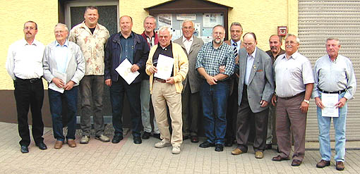Jahreshauptversammlung der Siedlergemeinschaft Strümpfelbrunn Bei der Jahreshauptversammlung der Siedlergemeinschaft Strümpfelbrunn konnten auch langjährige Mitglieder der Gemeinschaft geehrt werden. Unser Foto zeigt die Geehrten zusammen mit Gemeinschaftsleiter Reinhold Guckenhan (2.v.r.) Bürgermeister Klaus Schölch (5.v.r.), Ortsvorsteher Norbert Bienek (6.v.r.) und Kreisvorsitzender Herbert Wenig (7.v.r.). (Foto: Baumgartner)(tb) Zur Jahreshauptversammlung lud gestern die Siedlergemeinschaft Strümpfelbrunn in ihr Siedlerheim ein. Auf der Tagesordnung standen u.a. die Neuwahl der Kassenprüfer und Ehrung langjähriger Mitglieder der Siedlergemeinschaft. Gemeinschaftsleiter Reinhold Guckenhan begrüßte dabei die erschienen Mitglieder und Gäste, unter ihnen Bürgermeister Klaus Schölch, Ortsvorsteher Norbert Bienek und der Kreisvorsitzende des Siedlerverbandes Herbert Wenig. Schriftführer Jürgen Stötzer berichtete über die Aktivitäten des Vorstandes und der Gemeinschaft. Vordringliche Aufgabe im letzten Jahr sei die Renovierung des Siedlerheimes gewesen, so Stötzer. Insbesondere die Sanierung des Kamins und die Isolierung der Wasserleitungen seien dabei wichtig gewesen.