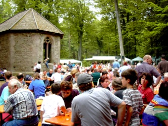 Petrus hatte Erbarmen am Vatertag (Foto: Broghammer)(bro) Großer Andrang herrschte heute beim traditionellen Waldfest am Kirchel auf der Schwanheimer Höhe. Gastgeber war der MGV Concordia Neckarwimmersbach, der mit seiner Bewirtung für das leibliche Wohl sorgte. Es schien so, als hätte der Verein einen Vertrag mit Petrus geschlossen, denn obwohl es öfters nach einem Gewitter aussah, hielt sich das Wetter bei sommerlichen Temperaturen.