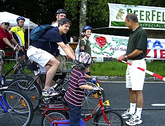 Mit Rad, Roller, Skatern und zu Fuß (Foto:privat)(tw) (kj) Sehr gute Resonanz fand das 1.Inliner-Event mit Familienradtag im Beerfelder Land am vergangenen Sonntag. Jung und Alt erfreuten sich beim Skaten und Rad fahren auf der für den Verkehr gesperrten Landesstraße und Hunderte gingen über den Tag verteilt auf die Strecke. Die ersten Teilnehmer wurden am Morgen von Bürgermeister Gottfried Görig in Beerfelden und Bürgermeister Hans Heinz Keursten in Rothenberg zeitgleich auf die Bahn gelassen und erfreuten sich an Vogelgezwitscher statt an Motorenlärm. Die Veranstaltung, von der Tourist-Information Beerfelder Land verantwortlich organisiert, war eine Gemeinschaftsaktion mit dem Verkehrs- und Gewerbeverein Beerfelden, dem Verkehrsverein Rothenberg in Zusammenarbeit bzw. mit Unterstützung der beiden DRK-Ortsvereine und der Feuerwehr Beerfelden sowie einiger Sponsoren.
