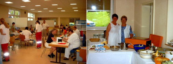 Viele Blutspender unterstützten die erste Blutspendeaktion Viele Blutspender wurden im Schönbrunner Bürgersaal für einen guten Zweck zur Ader gelassen. Nach dem Aderlaß konnten sich die Blutspender bei Speis und Trank erholen. (Fotos: Böhm)(ub) Mit drei Ärzten, vier Krankenschwestern und einem Fahrer unterstützte die mobile Blutspenderzentrale Mannheim am Montag die erste Blutspendeaktion in Schönbrunn.
