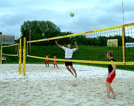Volleyballer auch im Sand erfolgreich Das Duo Grimme und Wagner beim Angriff (Foto:privat)(lf) (tg)Nach einer für die Volleyballer des TV Eberbach erfolgreichen Hallensaison, knüpfen nun die Beacher an die Leistungen nahtlos an.