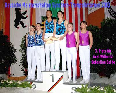 Dritter Platz bei Deutschen Meisterschaften Die drittplatzierten Axel Wilbertz (links) und Sebastian Batho auf dem Podest bei der Siegerehrung zur Deutschen Trampolin-Synchronmeisterschaft 2003 in Kornwestheim.