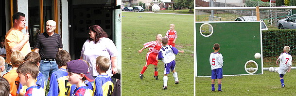 Sport und Unterhaltung bei der Ittertal- Spielvereinigung Bürgermeister Thomas Ihrig (l.) mit Harald Friedrich (m.) und Babara Nennemann (r.) bei der Siegerehrung des F- Jugendturniers. (Fotos:Claussen) (jc) Gestern begann in Kailbach die diesjährige Sportwerbewoche. Zum Start gab es zwei Jugendfußballturniere mit insgesamt zehn Mannschaften, sowie eine Abendveranstaltung im Festzelt mit den Unterhaltungskünstlerinnen Hertha und Sabine. Am Rande der Siegerehrung des F-Jugendturniers konnten Vereinsvorsitzender Harald Friedrich und Jugendleiterin Barbara Nennemann aus den Händen von Hessenecks Bürgermeister Thomas Ihrig finanzielle Zuwendungen für die errungene Meisterschaft in der Odenwälder B-Liga beziehungsweise für die Jugendarbeit bei der ISV Kailbach in Empfang nehmen.