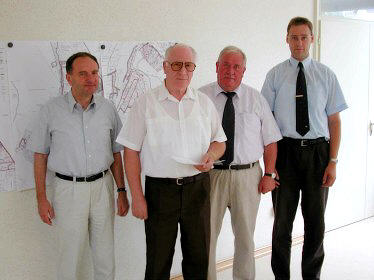 Projektleiter Egon Frei verabschiedet Reinhold Schmidt, Egon Frei, Bürgermeister Roland Schilling und Andreas Neubert bei der Verabschiedung. (Foto:Haas)