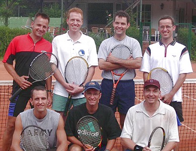Herren 30 in die Verbandsliga aufgestiegen - Für Herren 50 Klassenerhalt so gut wie sicher Die erfolgreichen Herren 30 von links: Andreas Palm, Frank Mützel, Peter Knapp (Kapitän), Jörg Beissmann, Frank Bassing, Michael Franz und Jochen Schmitt. Es fehlen: Josip Varga und Hanspeter Fried. (Foto:privat)(tw) (pk) Die Mannschaft Herren 30 sicherte sich in Ihrem letzten Heimspiel der Saison durch einen 9:0-Sieg gegen den TCH Heddesheim den Gruppensieg, die Bezirksmeisterschaft und gleichzeitig den Aufstieg in die Verbandsliga. Gegen den Tabellenletzten dominierte die Mannschaft von Anfang an, in den Einzeln wurde kein einziger Satz abgegeben. Michael Franz, Frank Bassing, Jörg Beissmann, Jochen Schmitt, Peter Knapp und Andreas Palm punkteten für Eberbach, die Doppel waren dann nur noch Formsache. Nach dem verschenkten Aufstieg in der letzten Saison gewannen die Herren 30 in dieser Runde alle Spiele klar und deutlich und stehen jetzt endlich in der Verbandsliga. Dort freut man sich unter anderem auf ein Wiedersehen mit Mosbach und spielt auch gegen so renommierte Clubs wie den Heidelberger TC.