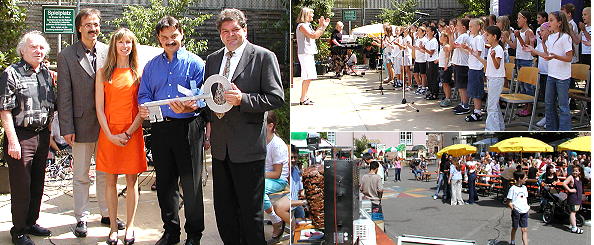(jc) Gestern wurde die umgebaute Dr. Weiß Grund- und Förderschule mit einem großen Schulfest eingeweiht. Bevor das Fest mit zahlreichen Projekten und Veranstaltungen der Schüler, Lehrer und Eltern rund um die Schule beginnen konnte stand am Vormittag zunächst der offizielle Einweihungsakt mit Schlüsselübergabe auf dem Programm. Festredner waren Bürgermeister Bernhard Martin, Elternvertreter Sascha Hepp und die Schulleiter Manfred König und Thomas Whang mit einer gemeinsamen Ansprache.