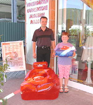 Gewinnübergabe bei Sven Bauer Sonnenschutztechnik Sven Bauer mit der achtjährigen Gewinnerin (Foto:privat)(jc) Die Gewinnerin Tamara Wäsch aus Eberbach erhielt am vergangen Donnerstag ihren Preis aus einer Sommer-Verlosung der Firma Weinor Markisen in Köln. Ihr Gewinn war, passend zur derzeitigen Wetterlage, ein "Sommer-Sonnen-Genießer-Set".
