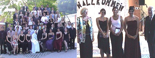 Es sei heute ein großer Tag für die Schülerinnen und Schüler. Die Schulzeit mitsamt ihrem Schulstress sei vorbei. Kein Einhalten von Regeln, kein Erledigen von Hausaufgaben und keine lästigen Klassenarbeiten mehr. Mit dem heutigen Erhalt der Zeugnisse sind die Abschlüsse dokumentiert. Aber das wichtigste an diesem Tag seien nicht die Zeugnisse, sondern die Qualifikationen für den Einstieg in eine Berufsausbildung oder den Besuch von weiterführenen Schulen. Baumbusch verglich den Schulabschluss mit dem Bau eines Hauses: Zuerst wird ein Fundament gelegt, auf welchem es gilt weiter zu bauen. Und es werde in der Bauphase immer wieder zu Schwierigkeiten kommen, die bewältigt werden müssen. So werde es auch mit dem Wunschhaus - Leben geschehen können. Wichtig sei aber immer der Mut zur Veränderung um das Traumhaus auch zu erreichen. Ein Zitat von der Gelehrten Katharina von Siena gab die Rektorin den Schülern mit auf den Weg: Nicht das Beginnen wird belohnt, sondern einzig und allein das Durchhalten. Hermann Bussemer wolle trotz der schlechten finanziellen Lage und der hohen Arbeitslosigkeit die Schüler nicht entmutigen. Wichtig sei es, sich viel Wissen anzueignen. Er beglückwünschte die Schülerinnen und Schüler zu den bestandenen Prüfungen und überreichte den Prüfungsbesten Anne Ringele (2,1), Hannah Rosenfeld (2,0) (beide 9. Klasse), sowie Katharina Köbler (1,6 - 10. Klasse) jeweils einen Buchpreis. Maren Riedinger und Charlotte Kräft (Klasse 10) bedankten sich bei ihrem "Chef" Udo Geilsdörfer dafür, dass er nicht nur in der Schule immer für sie da war, sondern auch bei außerschulischen Problemen ein offenes Ohr hatte. Ebenso dankten die Neuntklässler ihren Lehrerinnen Hannelore Stocker und Ulrike Roßmann mit Präsenten. Schülersprecher Alexander Götz stellte fest, dass man die Schule bewerten könne - von Note 1 bis Note 6. In der Sprache der Schüler von affengeil bis megaätzend. Susanne Götz bedankte sich im Namen der Eltern der 9. Klasse mit Olivenbäumchen bei den beiden Klassenlehrerinnen. Je nachdem wie man die Bäumchen pflege, trügen sie Früchte - früher oder später. Musikalisch umrahmt wurde die Veranstaltung von der Musikband der Klasse 10 unter der Leitung von Ekkehart Bock, sowie mit Tanzaufführungen der Klasse 9a und 9b.