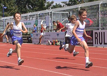 Junge Eberbacher Turner beim Gaukinderturnfest V.l. Lucas Brenneis, Bastian Richter und Fabio Broghammer beim Sprint. (Foto:Richter)(hr) (jl) Am Sonntag, 13.Juli, fand das diesjährige Gaukinderturnfest des Turngaus Heidelberg statt. Wie immer war auch der TV Eberbach mit dabei und turnte, kampfrichterte und organisierte mit bei der von der TSG Dossenheim ausgerichteten Veranstaltung. Der Veranstalter, die Turnerjugend des Turngaus Heidelberg, legte sich kräftig ins Zeug, um den Kindern im Alter zwischen 6 und 14 Jahren einen interessanten Wettkampftag zu bieten. Ungewöhnlich für die Nachwuchsturner war allein schon die mögliche Mischung von turnerischen und leichtathletischen Disziplinen in einem Wettkampf. Diese so genannten Wahlwettkämpfe sind den jungen Turnern und Turnerinnen aber bisher kaum angeboten worden.