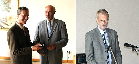 Letzter Schulleiter an Gewerbeschule wechselt in den Ruhestand Günter Engelhardt bei der Verleihung der Silbernen Ehrenmedaillie des Rhein-Neckar-Kreises durch Dr.Jürgen Schütz und der neue Schulleiter bei seiner Antrittsrede (Fotos:Claussen)(jc) Heute wurde in der Aula des Berufsschulzentrums mit Studiendirektor Günter Engelhardt letztmals ein Schulleiter der Gewerbeschule Eberbach in den Ruhestand verabschiedet. Nach der Fusion der Theodor-Frey-Schule und der Gewerbeschule zum "Berufsschulzentrum Theodor Frey" am 1. August wird das Schulzentrum dann von Studiendirektor Jörg Andresen geleitet, der bereits seit dem vergangenen Jahr die "alte" Theodor-Frey-Schule kommissarisch leitet und auch stellvertretender Schulleiter der Gewerbeschule ist.