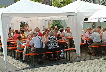 Alles hat seine Zeit (Foto: Thomas Wörner)(bro) (pb) Am gestrigen Sonntag stand das Pfarrfest in St. Josef unter dem Motto: "Alles hat seine Zeit". Der Gottesdienst wurde vom Jugendliturgiekreis und dem KJG-Singkreis feierlich gestaltet. Im Anschluß daran spielte bei herrlichem Wetter die Pfarrkapelle zum Frühschoppen auf. Viele fleißige Hände versorgten die zahlreichen Besucher mit ausreichend Speis und Trank. Das Kuchenbuffet entsprach den Erwartungen und ließ keine Wünsche offen. Während des ganzen Tages wurde ein Bücherflohmarkt abgehalten und Parkettklötzchen zum Verkauf angeboten. Auch die Kleinsten kamen nicht zu kurz. Sie tobten unter Aufsicht im Kindergarten. Alle Aktivitäten waren zu Gunsten der erst kürzlich abgeschlossenen Innenrenovation - der Erfolg war ein gutes Zeichen für alle, die sich für dieses Fest eingesetzt haben.