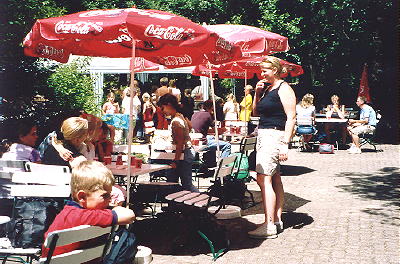 Zur Mittagszeit fanden sich die Kinder auf der großen Terrasse ein. Zur Stärkung gab es dort Würstchen mit Brötchen und Getränke. Anschließend konnten die einzelnen Gruppen noch einmal die Märchenwälder durchstreifen.