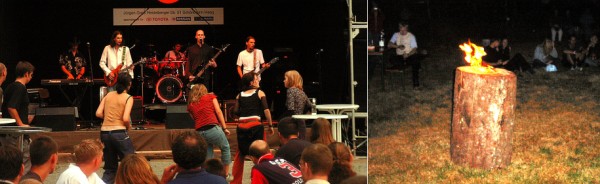 (ub) Hunderte rockbegeisterte Fans fanden sich am Wochenende zum 4.Rock Open Air Konzert ein, um bei einem Benefizkonzert Rock vom Feinsten zu lauschen. Acht Bands traten unentgeltlich auf, um mit den Erlösen aus dem Rockkonzert eine Skaterbahn für Schönbrunner Jugendliche bauen zu können. Die Gruppen Dileit, Simplex, Call Out und Kabine 4 sorgten bereits am Freitag für Stimmung. Gestern Abend heizten The Head Aches, Justice, Stream Powered Aeroplane und Cross Over dem altersmäßig bunt gemischten Publikum ordentlich ein. Fackeln aus kurzgesägten Baumstümpfen sorgten für Lagerfeuerromantik und ein stimmungsvolles Ambiente. Die Zusammenarbeit zwischen Freiwilliger Feuerwehr, DRK und dem Veranstalter AKA klappte reibungslos.