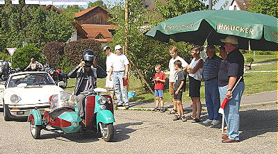 Vom Quickly bis zum Rolls Royce fast alles dabei (Foto:Reinmuth)(jc) (at) Rund hundert Liebhaber alter Autos und Motorräder zwischen Bodensee und Odenwald waren der Einladung des Oldtimer-Club "Kleiner Odenwald-Neckartal" übers Wochenende gefolgt, um an der ausgeschriebenen Oldtimer-Ausfahrt für Autos und Motorräder mit verschiedenen Prüfungen teilzunehmen. Treffpunkt war das Schönbrunner Rathaus, wo die Oldtimerfreunde auf dem Vorplatz ihr "Heiligs Blechle" vor Beginn der Ausfahrt zur Schau stellten. In der Tat: Es waren Raritäten dabei, die viel bewundert und über ihren hervorragenden technischen Zustand bestaunt wurden.