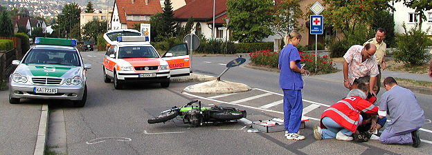 Gegen Verkehrsschild geprallt (Foto:Claussen)(jc) Zu geringer Sicherheitsabstand war vermutlich die Ursache für einen Verkehrsunfall, der sich heute Morgen gegen 7.15 Uhr ereignete. In der Friedrichsdorfer Landstraße, auf Höhe des Penny- Marktes, fuhr ein Mopedfahrer stadtauswärts, als die vor ihm fahrende Pkw- Lenkerin, in der Absicht, in Richtung Waldbrunn abzubiegen, bremste. Der Führer des Simson- Zweirades versuchte dem Pkw links auszuweichen, prallte gegen ein auf einer Verkehrsinsel angebrachtes Verkehrsschild und kam zu Fall. Dabei zog er sich erhebliche Verletzungen zu. Nach einer Erstversorgung durch eine Notärztin wurde er in das Eberbacher Krankenhaus eingeliefert. Am Moped entstand Totalschaden. Der Pkw wurde nur leicht beschädigt.