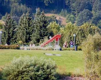 Kleinkind nicht lebensbedrohlich verletzt Vom Turm der Wasserrutsche fiel das Mädchen zu Boden (Foto: Böhm)(ub) Bei tropischer Hitze kletterte gestern Abend ein vierjähriges Mädchen auf die Wasserrutsche im Eberbacher Schwimmbad und fiel aus ungeklärter Ursache auf den tieferliegenden Betonboden. Wie die Polizei Eberbach mitteilt, gibt es zum Unfallhergang keine direkten Zeugen. Nach einer Erstversorgung durch den Notarzt wurde das Kleinkind mit dem Hubschrauber zur Weiterbehandlung in die Heidelberger Kopfklinik geflogen. Zwischenzeitlich steht fest, dass das Kind keine lebensbedrohlichen Verletzungen erlitten hat und keine bleibenden Schäden behält.