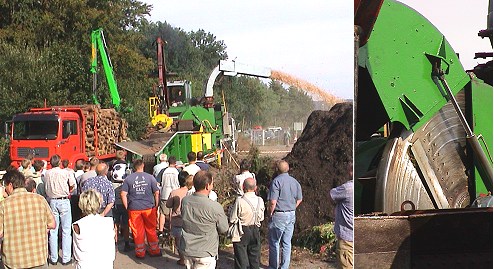 Mobiler Großhacker zerkleinert Energieholz für Heizanlagen (Fotos:Richter)(hr) Einen mobilen Großhacker präsentierten das Hessische Forstamt Beerfelden und die Firma Holzeinkauf Obenauer aus Sensbachtal gestern in der Kompostierungsanlage Beerfelden. Der stellvertretende Forstamtsleiter Jürgen Lampert konnte zu der Vorführung neben zahlreichen Mitgliedern der Forstbetriebsgemeinschaft (FBG) Oberzent und Forstleuten auch Landrat Horst Schnur sowie die Bürgermeister Hans Heinz Keursten (Rothenberg) und Gottfried Görig (Beerfelden) begrüßen. Letzterer ist auch 2.Vorsitzender der FBG Oberzent.