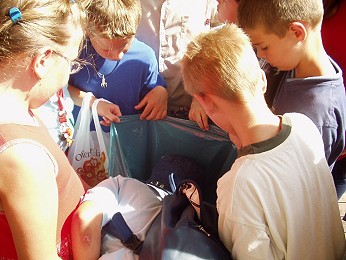 Kinder spürten dem Grün in der Altstadt nach (Foto:privat)(hr) (Quelle:Eberb.Ztg.) 24 Fragen zur "Grünen Altstadt" Eberbachs hatten die 46 Kinder im Alter zwischen 8 und 14 Jahren zu beantworten, die gestern an der 5. Eberbacher Stadtrallye der Tourist-Information teilnahmen. Gefragt war mottogemäß nach Grünem, nach Bäumen und Sträuchern, die in der Altstadt wachsen. Schnell fanden die Kids die Lösungen, die sie in einen vorher verteilten Fragebogen eintragen konnten. Bei der Rallye ging es nicht darum, einen Sieger zu ermitteln, sondern ums Dabeisein und um den Spaß. Sarah Siegmund (8 Jahre), Jürgen Schmitt (12 ) und Kathrin Schmidt (10) kamen als Einzige mit null Fehlern wieder in den Hof im Thalheimschen Haus zurück. Als Preise verteilten die Veranstalter Mousepads der Stadt Eberbach, Kugelschreiber und Eis vom Café Viktoria. Außerdem stifteten die AOK Eberbach und die Volksbank Neckartal zusätzliche Preise, die sich die Kinder aus einem Krabbelsack ziehen konnten.