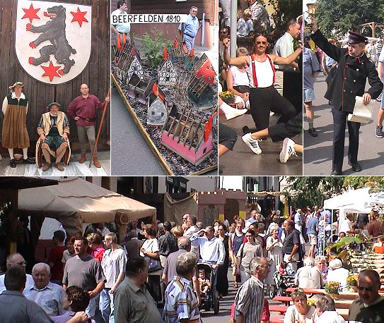 Beerfelden feierte 675 Jahre Stadt- und Marktrechte (Fotos:Richter)(hr) Mit einem bunten historischen Programm feierte Beerfelden gestern die Verleihung der Stadtrechte vor 675 Jahren. Rund um die Martinskirche gruppierten sich Darstellungen aus der Stadtgeschichte, historische Bewirtungsstände und Vorführungen der Vereine. Diese fanden teilweise vor der Kirche auf der Showbühne statt.