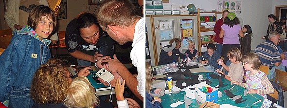 Dank zahlreicher NAJU-Betreuer und der Unterstützung von Martina Stahl und Ralf Hausemann (beide NABU-Mosbach), die mit zwei Fledermauspfleglingen am Infostand die Kinder begeisterten, konnte an der Dr. Weiß-Grundschule wieder ein sehr informatives Programm zur Fledermausnacht gestaltet werden. Ab 20 Uhr hatten die ca. 50 teilnehmenden Kinder die Möglichkeit an Basteltischen, durch zwei Videofilme, gemütlich im Vorlesezelt, am Spieltisch oder in Form von Kreis-und Rennspielen vieles über das Leben der einheimischen Fledermausarten zu erfahren. Sehr erfreulich war das rege Interesse der Eltern, die sich von den Fledermausexperten vor Ort über den Bau und das Anbringen von Fledermauskästen oder die fledermausfreundliche Bepflanzung ihres Gartens beraten ließen.