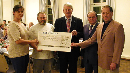 (jc) Im Rahmen des Vereins- Sponsoringprogramms der Volksbank Neckartal übergaben gestern in Neckarsteinach die Vorstände Wilfried Herbold und Günter Michel an Vereinsvertreter aus dem Marktgebiet des Instituts einen symbolischen Scheck in Höhe von 50.000 Euro. Die Bank unterstützt inzwischen mehr als 600 eingetragene Vereine, davon rund 200 im Rahmen des Förderprogramms.