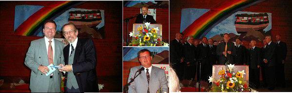Großer Festakt zum Jubiläum der Lebenshilfe Bürgermeister Bernhard Martin und Günter Johannsen beim Festakt. Reinhard Adler hielt die Festansprache. Thomas Ihrig unterstützt die Lebenshilfe auch weiterhin. Der MGV Concordia umrahmte die Feier. (Fotos:Böhm)(ub) Auf 40 Jahre soziales ehrenamtliches Engagement kann die Lebenshilfe Eberbach zurückblicken. Im Evangelischen Gemeindezentrum feierte der Verein heute sein Jubiläum mit einem Festakt, zu dem zahlreiche Ehrengäste erschienen. Mit einem bunten Rahmenprogramm, gestaltet vom Männergesangverein Concordia, dem Katholischen Kindergarten St. Elisabeth, dem Fanfarenzug der Stadt Eberbach, einer Theatergruppe der Johannes-Anstalten Mosbach und dem Kinderchor "Lolipop" des MGV Schönbrunn feierte die Lebenshilfe Eberbach ihr Jubiläum.