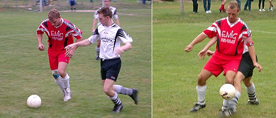 ISV Kailbach gegen SG Rothenberg 5:1 ISV Spieler im Zweikampf. Links: Roy Garthoff und Rechts mit 4 Toren Mann des Tages Andreas Graf (Fotos:Friedrich)(lf) (tc) Nach den letzten beiden Niederlagen, konnte die Rippberger Truppe einen auch in dieser Höhe verdienten Sieg einspielen. Nach viel Geplänkel im Mittelfeld nahmen die Kailbacher zunehmend das Spiel in die Hand. Die ISV kam in der 26. Minute zu ihrer 1. Großchance, nach einem Steilpaß von Roy Garthoff auf Andreas Graf. Dieser flankte den Ball in den Rücken der SG Abwehr auf Andy Trunk, dessen Schuß der Rothenberger Keeper gerade noch parieren konnte. Nur 2 Minuten später fiel durch einen Kopfball von Andreas Graf nach einer schönen Flanke von Florian Bachl die 1:0 Führung. In der 38. Minute verhinderte der gut spielende Kailbacher Goalie Dieter Hitzenbacher den möglichen Ausgleich nach einem Freistoß aus ca. 18 Metern in die rechte Ecke. Nach schöner Einzelleistung von Steffen Windt in der 40. Minute konnte Andreas Graf den Abpraller seines Schusses mit dem Kopf zum 2:0 Pausenstand abschließen.